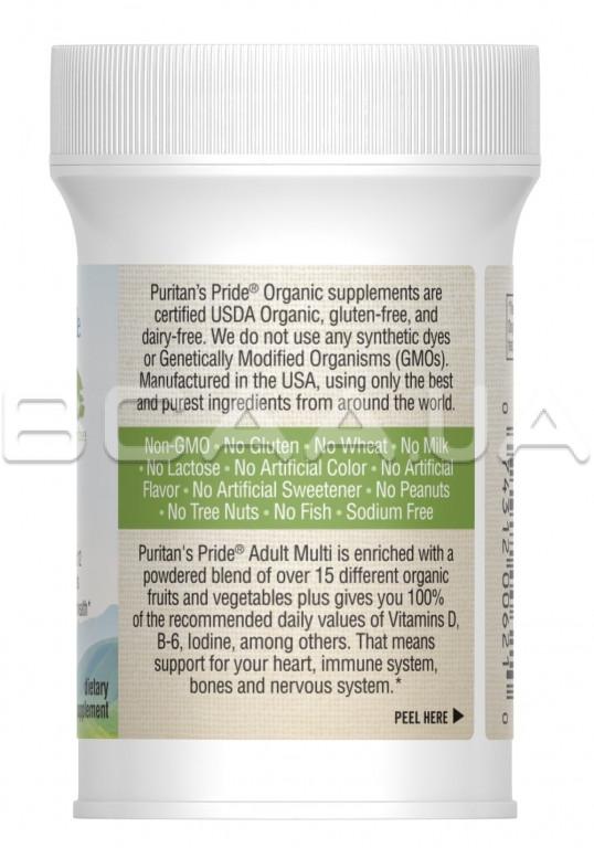 Описание Puritan's Pride, Organic Adult Multi 30 Tablets