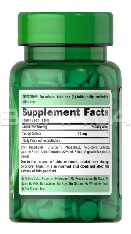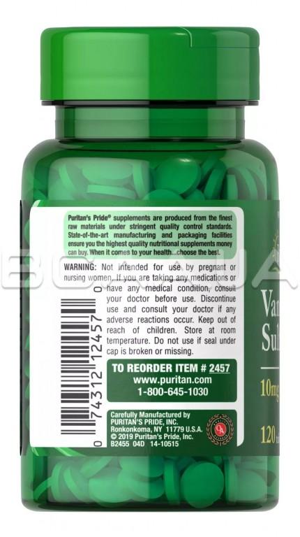 Описание Puritan's Pride Vanadyl Sulfate 10 mg 120 Tablets
