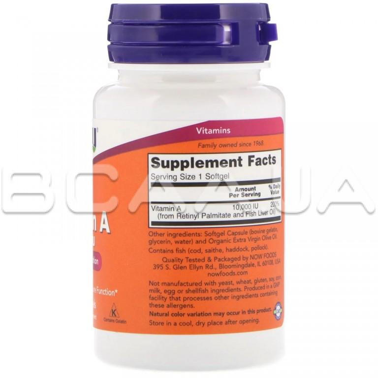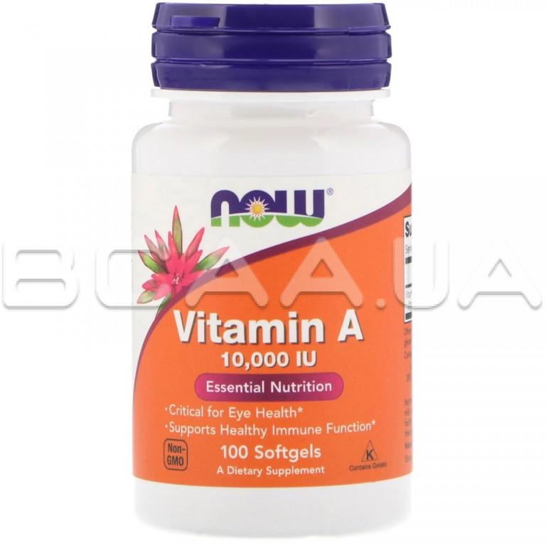 Описание Now Foods, Vitamin A (Витамин А) 10,000 IU 100 Softgels