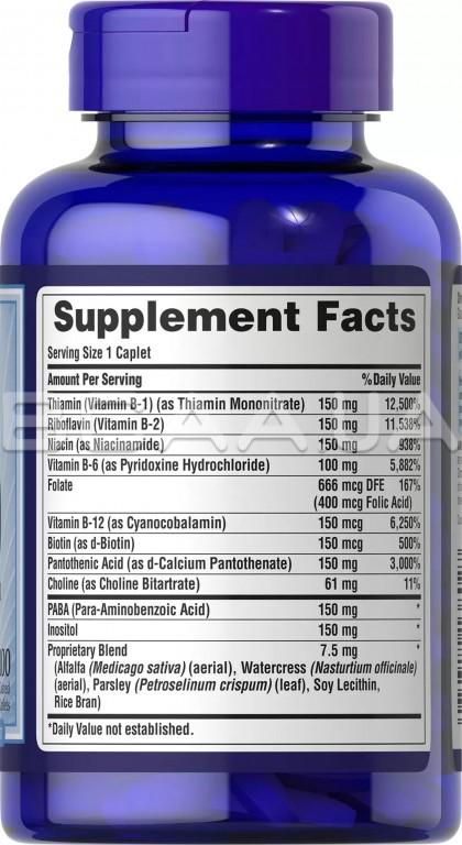 - Этот продукт содержит по 150 мг B-1, B-2, ниацина, инозита, ПАБК, пантотеновой кислоты и битартрата холина, а также 100 мг B-6, 150 мкг B-12 и биотина и 400 мкг фолиевой кислоты.