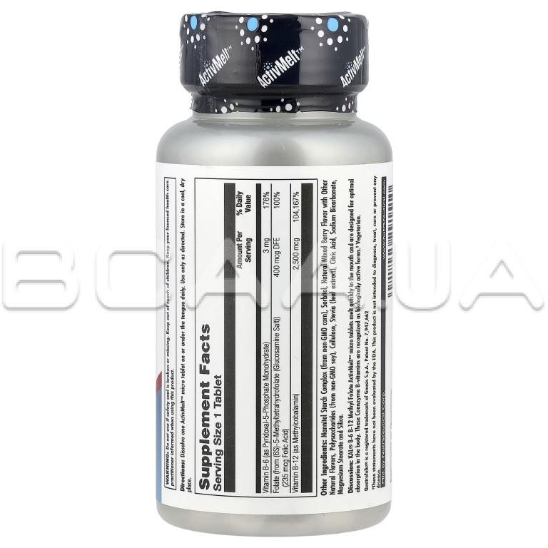 Витамины B-6, B-12 и метилфолат в форме микро таблеток.