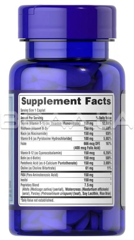 Описание Puritan's Pride, Vitamin B-150 Complex (Витамин Б Комплекс), 30 Coated Caplets