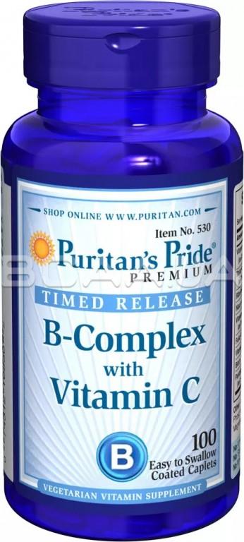 Описание Puritan's Pride Vitamin B-Complex + Vitamin C 100 Easy To Swallow Сoated Сaplets