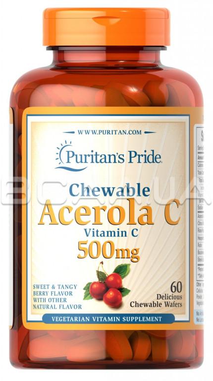 Puritan's Pride, Chewable Acerola C (Ацерола) 500 mg, 60 Delicious Chewable Wafers