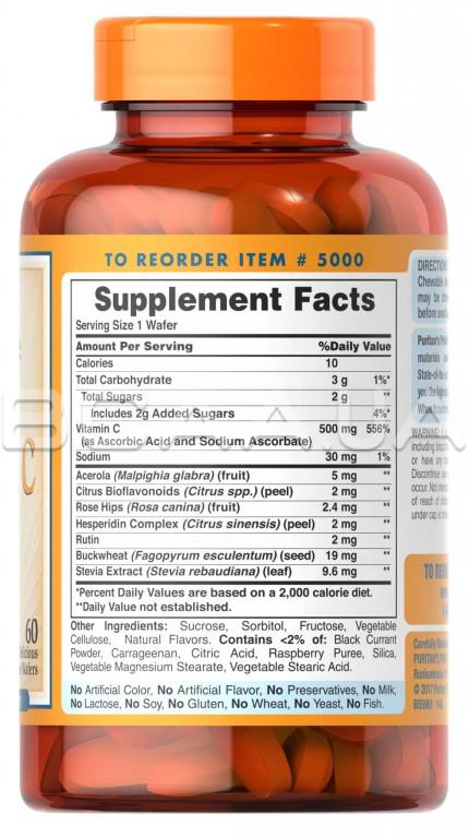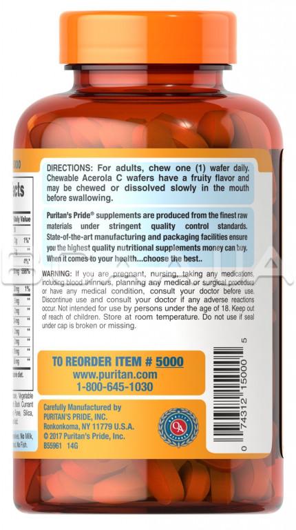 Описание Puritan's Pride, Chewable Acerola C (Ацерола) 500 mg, 60 Delicious Chewable Wafers