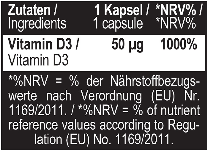- Содержит 2000 МЕ (50 мкг) витамина D3 в каждой мягкой капсуле;