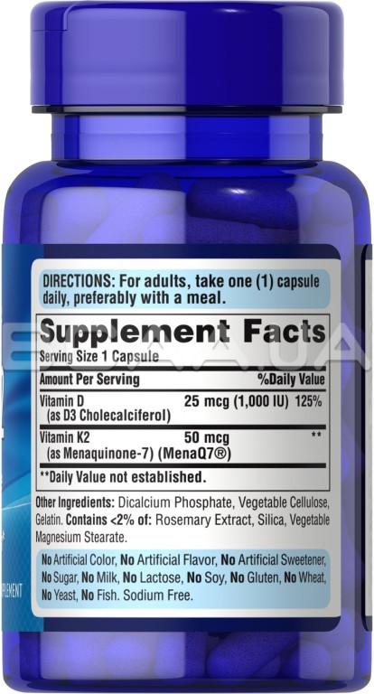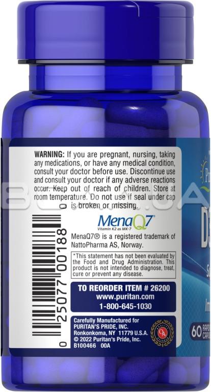 Описание Puritan's Pride, D3 & K2, Rapid Release Capsules