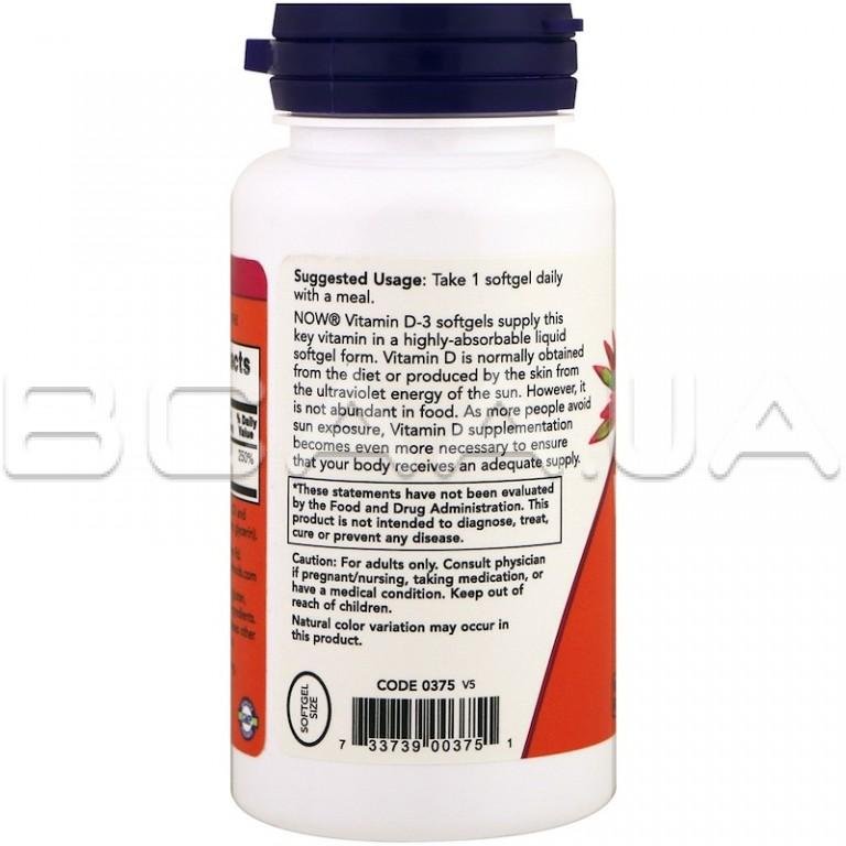 Описание Now Foods, Vitamin D-3, 1000 IU 360 капсул