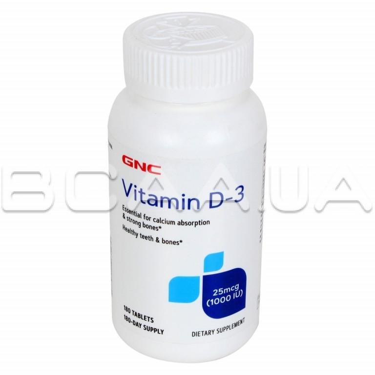 Описание Gnc Vitamin D-3, 25 mcg (1,000 IU) 180 Tablets