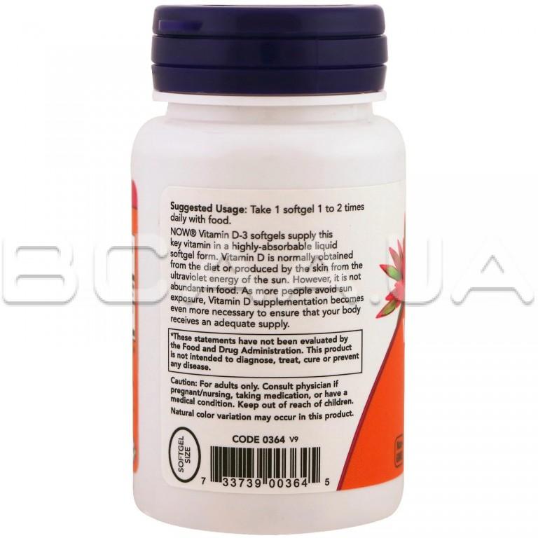 Описание Now Foods, Vitamin D-3 (Витамин Д) 400 IU, 180 Softgels
