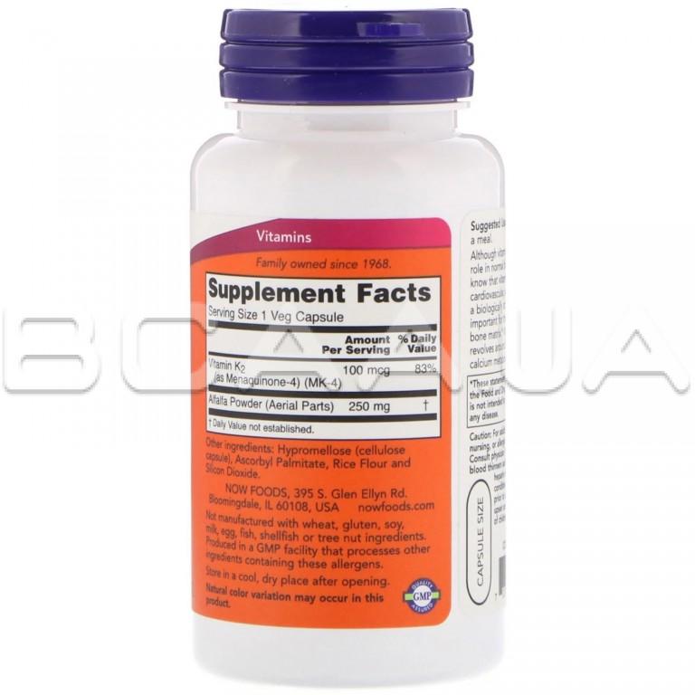 Описание Now Foods Vitamin K-2 100 mcg 100 Veg Capsules