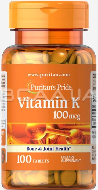 Описание Puritan's Pride Vitamin K 100 mcg 100 таблеток