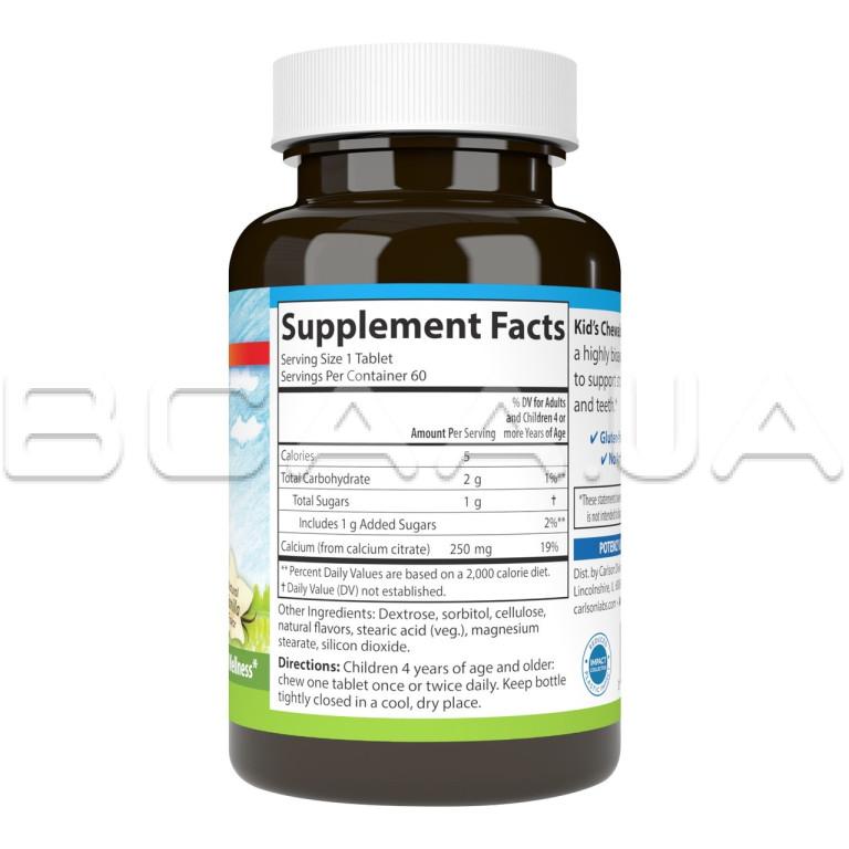 Описание Carlson, Kid's, Chewable Calcium 250 mg, Tablets