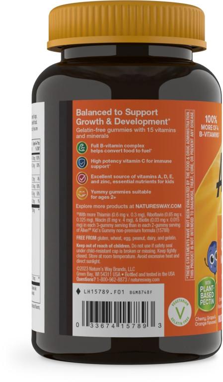 - Nature's Way, Alive! Kids, Premium Gummy Multivitamin — это вкусный и удобный способ поддержать общее здоровье, рост и иммунную функцию детей. Эта усовершенствованная формула мультивитаминов специально разработана для детей, обеспечивая необходимые витамины и минералы для поддержания энергии, развития костей и общего самочувствия. Благодаря приятному вкусу и форме жевательных конфет, здоровое питание становится легким и приятным для растущих детей.