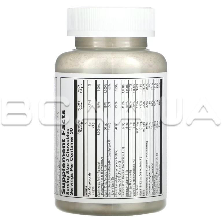 - Solaray, Kids Vitamins & Minerals Chewable содержат значительное количество необходимых питательных веществ и предназначены для поддержки иммунной системы вашего ребенка, роста, энергии, костей, зубов, мышечной функции и многого другого. Добавка не содержит дрожжей, искусственных ароматизаторов или красителей.