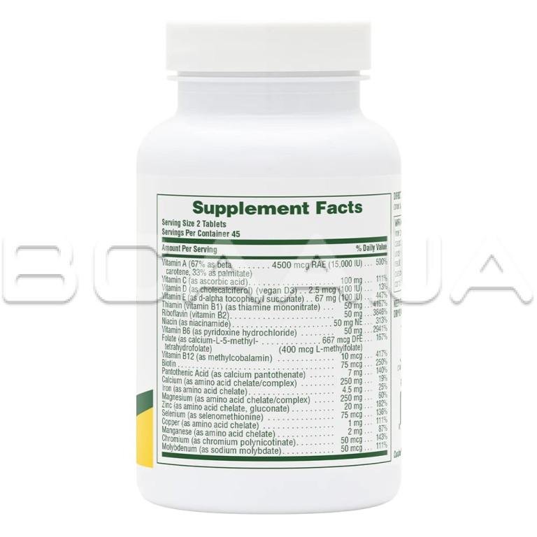 - Фолат (в виде кальция-L-5-метилтетрагидрофолата) 667 мкг DFE (400 мкг L-метилфолата) 167%