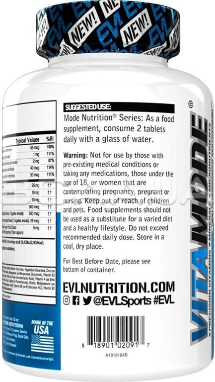 - Одна порция EVLution Nutrition, VitaMode High-Performance Multivitamin содержит ключевые витамины, минералы, антиоксиданты, ферменты, микроэлементы и фитонутриенты для поддержки костей, глаз, иммунитета, кожи и общего здоровья;