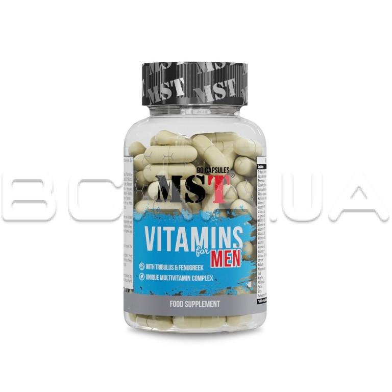 - MST, Vitamins for Men — это комплексная поливитаминная и минеральная добавка, разработанная с учетом особых потребностей мужчин в области здоровья. Этот продукт сочетает в себе основные витамины, минералы, растительные экстракты и антиоксиданты для поддержки общего благополучия, уровня энергии и физической работоспособности.