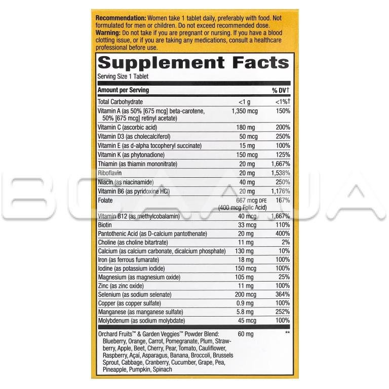 - Полная ежедневная поддержка: разработан для поддержки общего здоровья, уровня энергии и благополучия женщин с помощью более чем 20 основных витаминов и минералов;