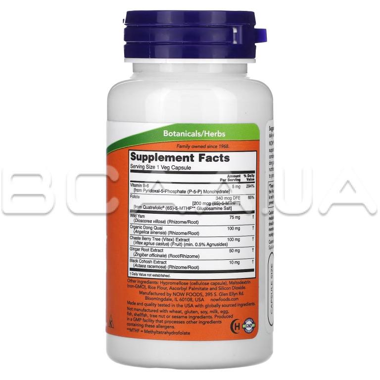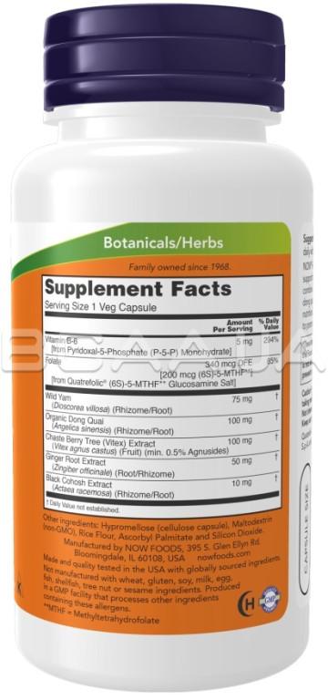 - Now Foods, Female Balance™ — это уникальная формула на основе трав для поддержки женского здоровья. Специалисты Now Foods объединили растительные ингредиенты дикого ямса, витекса, донг-квая, имбиря и черного клопогона с питательной поддержкой витамина B-6 и фолиевой кислоты для поддержания здорового женского баланса. Добавка помогает справиться с такими проблемами, как ПМС, болезненные менструации и стресс. Благодаря витамину B-6 и фолиевой кислоте, поддерживает здоровье сердца и нормальный уровень гормонов в организме. В этой добавке могут наблюдаться естественные изменения цвета.