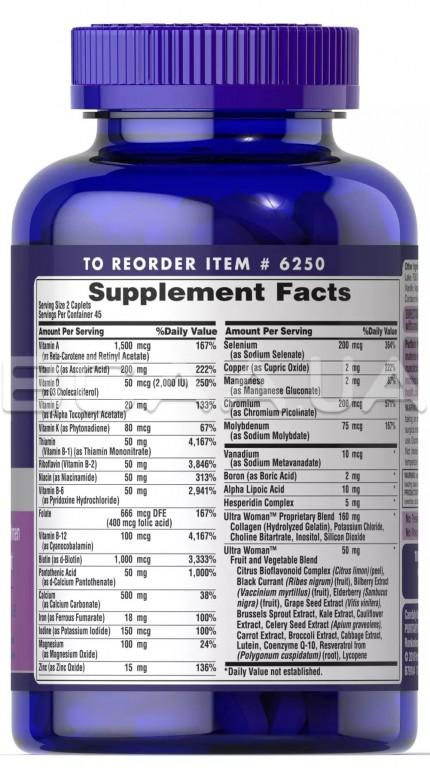 - Ultra Woman ™ Daily Multi - это мультивитаминная формула, обеспечивает ключевые ингредиенты, такие как кальций, железо, фолиевая кислота и B-6, которые особенно необходимы для женского организма.