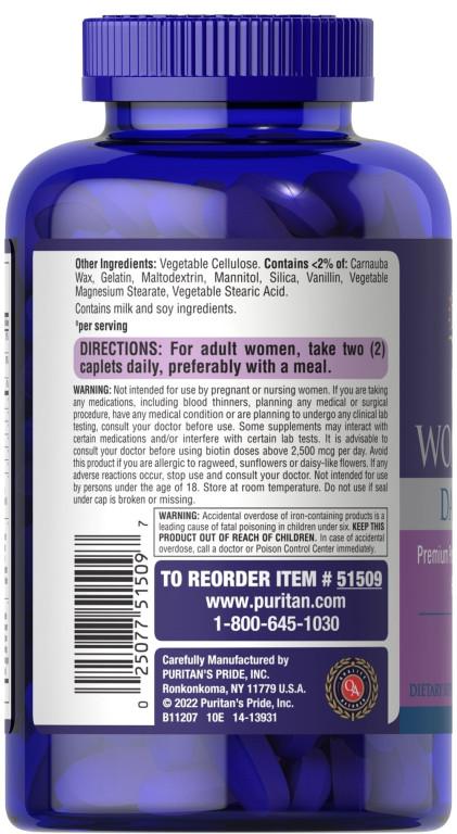 Описание Puritan's Pride, Ultra Woman™ Max Daily Multivitamin, Coated Caplets