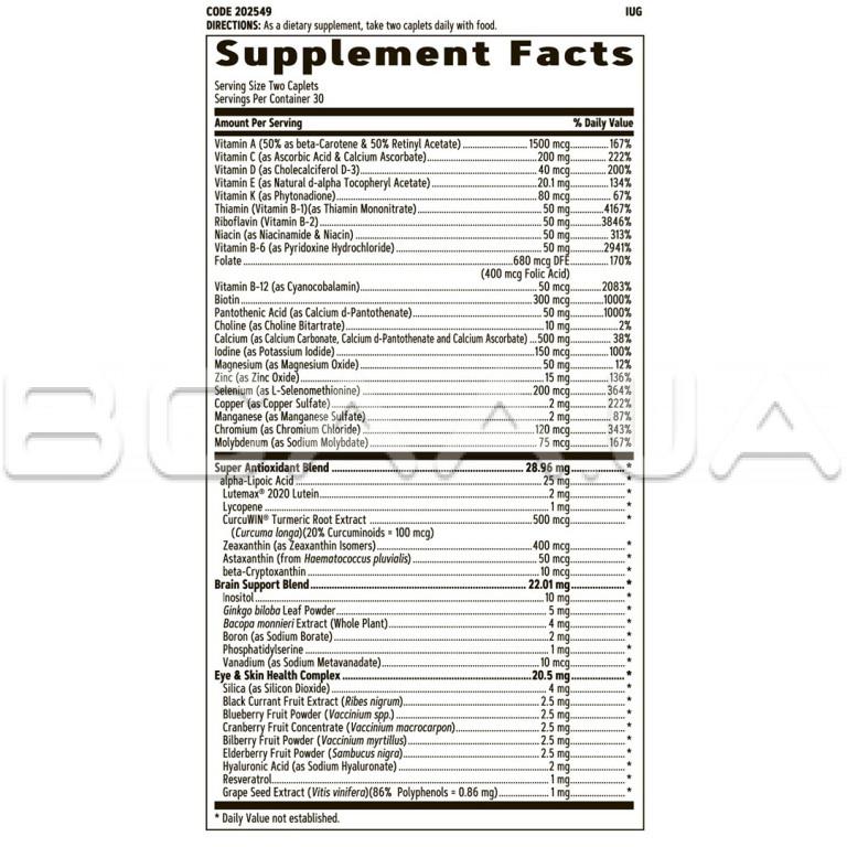 - Включает холин для поддержки функции памяти и гинкго билоба для остроты ума.