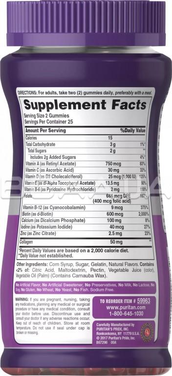 Содержит 10 основных витаминов и минералов, коллаген и биотин.