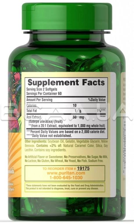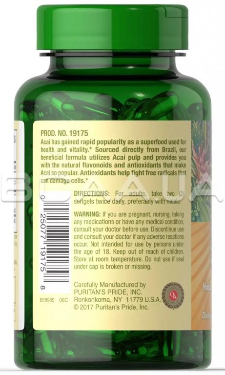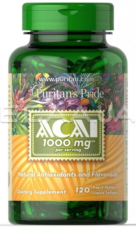Описание Puritan's Pride Acai 1000 mg 120 Rapid Release Liquid Softgels