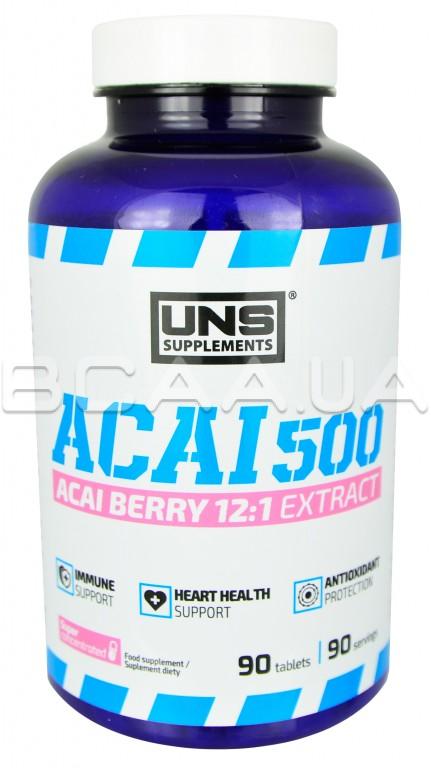 - UNS ACAI 500 - это добавка в форме таблеток, содержащая концентрированный экстракт ягод асаи (Euterpe oleracea) 12:1, с исключительно высоким содержанием микроэлементов, антиоксидантов и омега-кислот. Рекомендуется людям, которые заботятся о здоровье, физически активным людям и пациентам во время выздоровления.