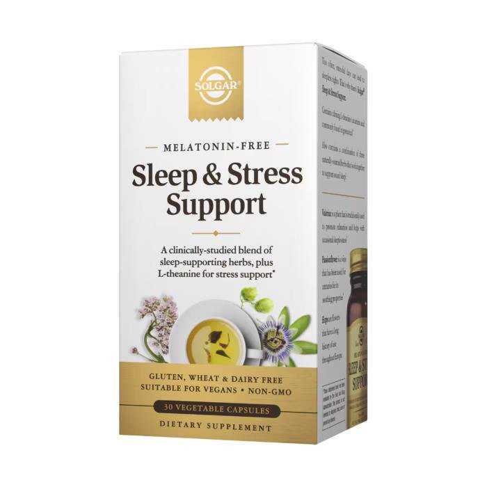 - Solgar, Sleep & Stress Support — это премиальная пищевая добавка, предназначенная для релаксации, спокойного сна и управления стрессом. Она содержит смесь клинически изученных ингредиентов, которые помогают организму адаптироваться к стрессу, поддерживая при этом здоровый цикл сна.