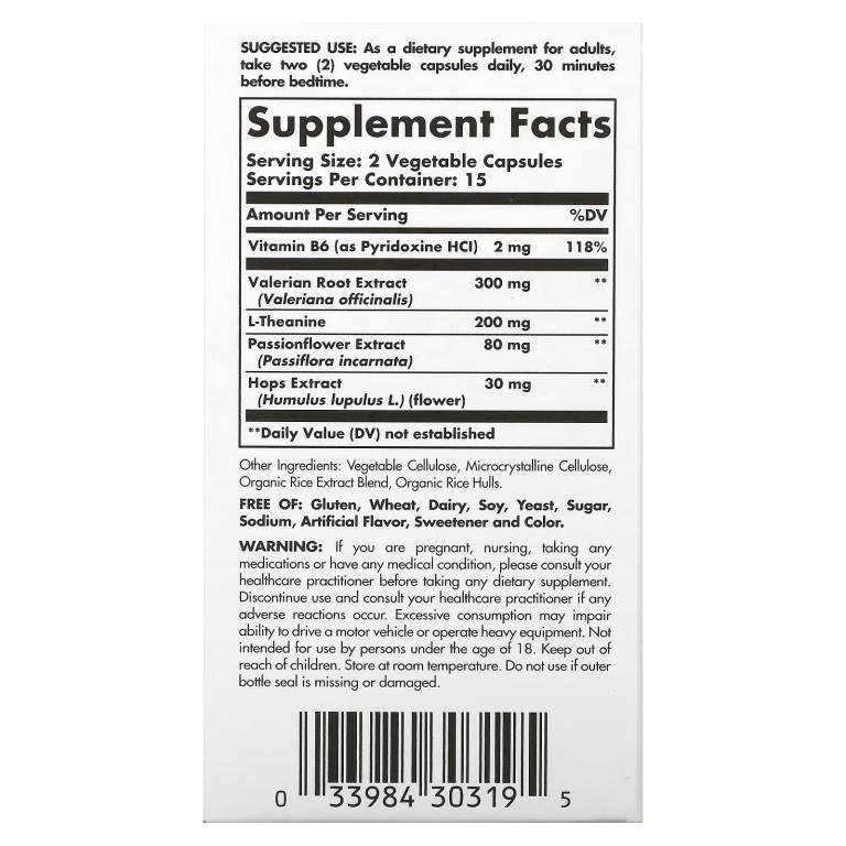 Описание Solgar, Sleep & Stress Support, Vegetable Capsules
