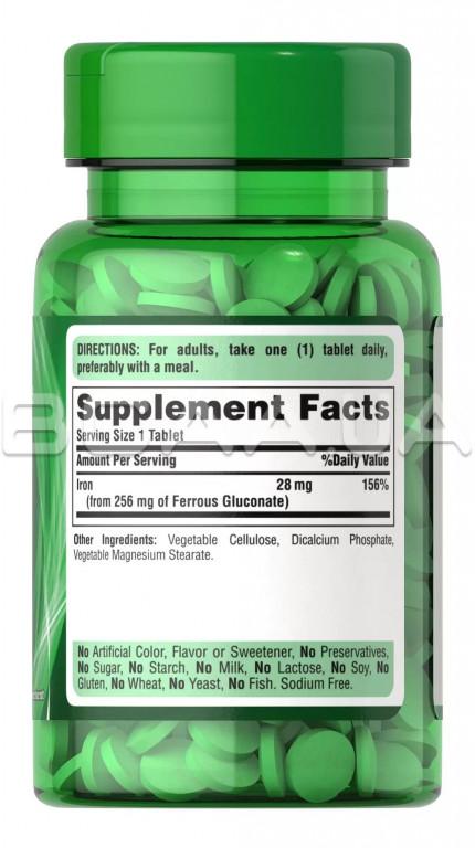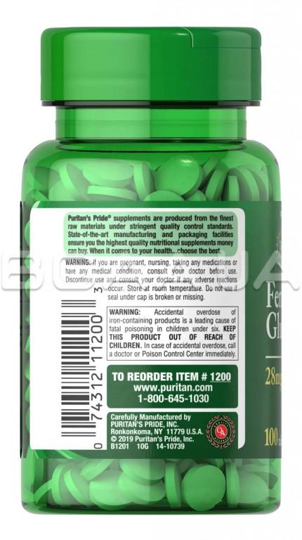 Описание Puritan's Pride Ferrous Gluconate (28 mg Iron) 100 Tablets