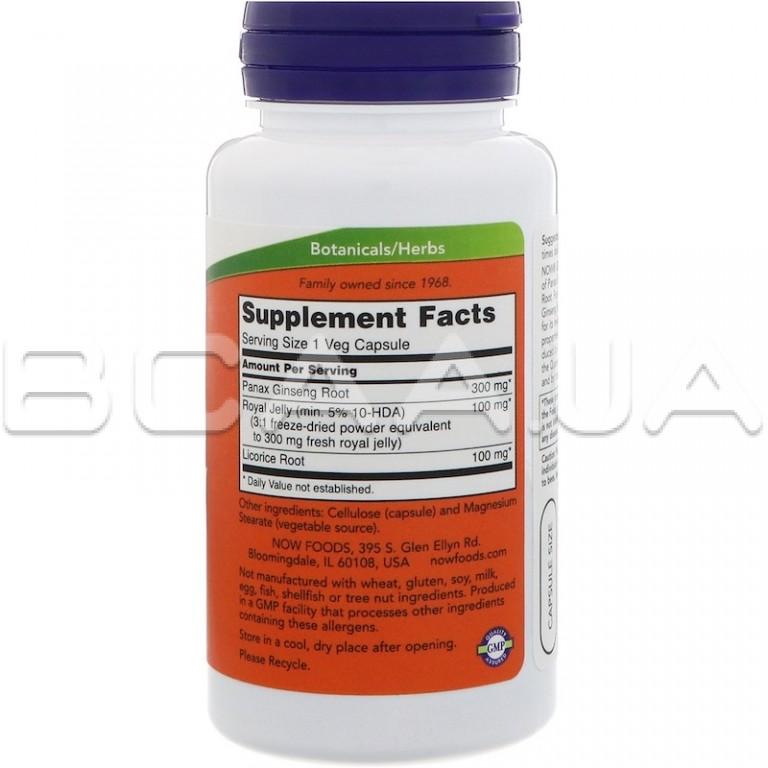 - Now Foods, Ginseng & Royal Jelly - содержит в своем составе активные ингредиенты как женьшень, пчелиное маточное молочко и корень солодки.