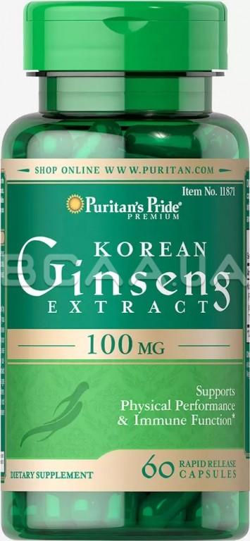 Описание Puritan's Pride, Korean Ginseng Extract (Экстракт женьшеня) 100 mg, 60 Rapid Release Capsules