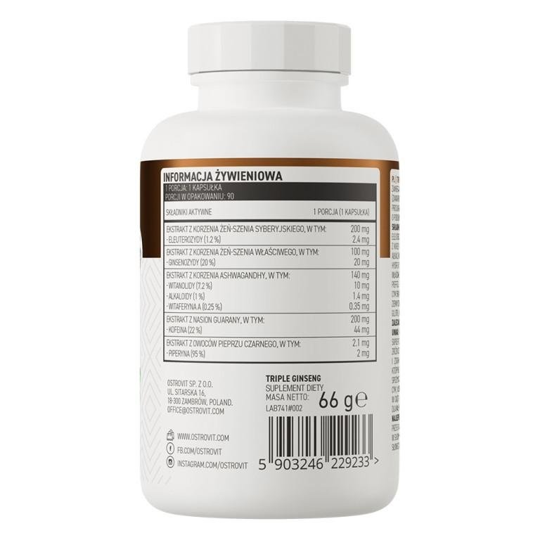 - Ostrovit, Triple Ginseng Vege — это растительная добавка, сочетающая три вида женьшеня для поддержания энергии, умственной работоспособности и общей жизненной силы. Женьшень традиционно используется на протяжении веков как адаптогенное растение, помогающее организму справляться с физическим и умственным стрессом, а также повышающее выносливость и концентрацию. Эта формула, подходящая для веганов, идеально подходит для тех, кто ищет естественную поддержку для повседневной активности и хорошего самочувствия.