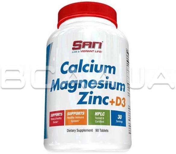 San, Calcium Magnesium Zinc (Кальций Магний Цинк) + Витамин D3 90 Tablets