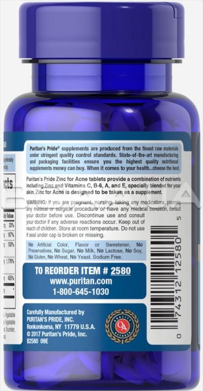Описание Puritan's Pride Zinc for Acne 100 Tablets
