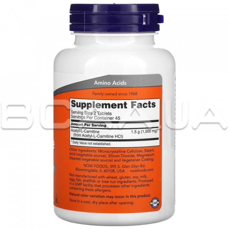 Описание Now Foods, Acetyl-L Carnitine, 750 mg, 90 Tablets
