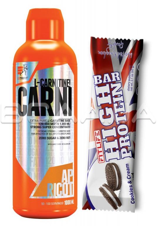 Статьи о Extrifit, Carni 120.000 Liquid, 1000 ml + Fitlife High Protein Bar 60 g