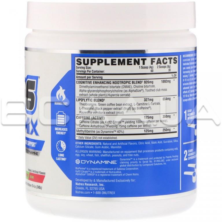 - Кофеин (активный) - 175 мг : Кофеина цитрат (Kaff2 Citrat™, соответствует 100 мг кофеина в мерной ложке), кофеин безводный (соответствует 75 мг кофеина в мерной ложке)